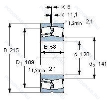 22224-E-K-C3-W33 - Подшипник роликовый сферический, 120x215x58 мм.