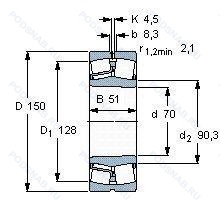 22314-E-K-C3-W33 - Подшипник роликовый сферический, 70x150x51 мм.