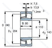 22322-E-K-C3-W33 - Подшипник роликовый сферический, 110x240x80 мм.