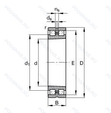 | NN3084 | Канавка под стопорное кольцо на наружном кольце подшипника. Двухрядный цилиндрический роликовый подшипник. Основное конструктивное исполнение. |