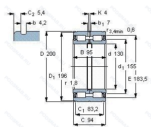 | E5026NR | Роликовый радиальный цилиндрический двухрядный подшипник. Канавка под стопорное кольцо на наружном кольце с соответствующим стопорным кольцом. | 130.00 | 200.00 | 95.00 |