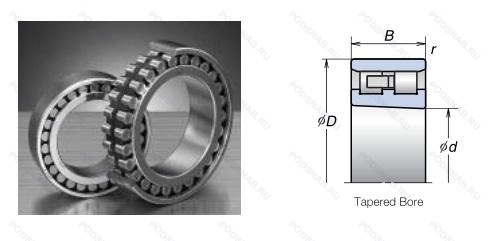 Двухрядный цилиндрический роликоподшипник, для невзаимозаменяемых цилиндрических роликоподшипников. зазор менее сс2, наружное кольцо с обработанной смазочной канавкой и отверстиями (только для двурядных), сепаратор оконного типа из фенольной смолы. укрепленной тканью. центрирующее внутреннее кольцо, точность размеров и хода по классу точности 4 по iso (более точная. чем p5) - abec7, коническое отверстие.