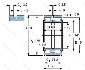 | E5024NR | Роликовый радиальный цилиндрический двухрядный подшипник. Канавка под стопорное кольцо на наружном кольце с соответствующим стопорным кольцом. | 120.00 | 180.00 | 80.00 |