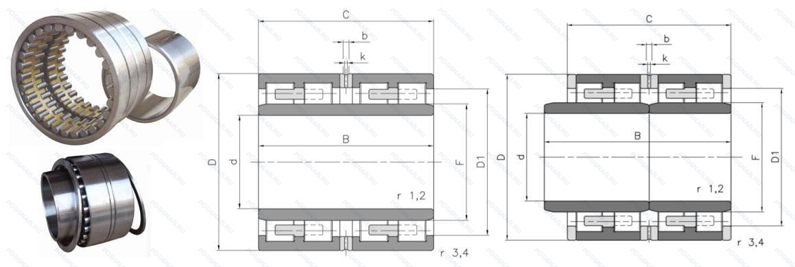 | E-4R16406 | Роликовый радиальный цилиндрический четырехрядный подшипник. Подшипник с цементованными роликами и кольцами. | 820.00 | 1130.00 | 800.00 |
