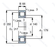 Размер подшипника: 140x250x68 мм.