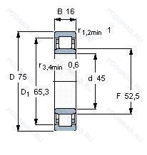 | N1009EP5 | ISO | Однорядный цилиндрический роликовый подшипник. |