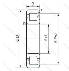 | NF1015M | Подшипник с латунным сепаратором. центрированный по телам качения. |