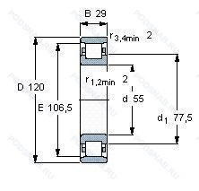 Модификации цилиндрического роликового подшипника N311-E-M1 — это измененное основное конструктивное исполнение N311, основные размеры (55x120x29) не отличаются.