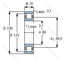 | N312N | Канавка под стопорное кольцо на внешнем кольце. |
