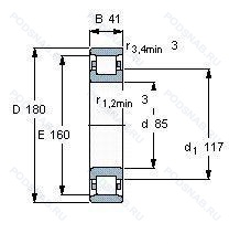 Модификации цилиндрического роликового подшипника N317ECP/C3 — это измененное основное конструктивное исполнение N317, основные размеры (85x180x41) не отличаются.