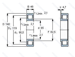 Модификации цилиндрического роликового подшипника NJ2313-E-M1-C3 — это измененное основное конструктивное исполнение NJ2313, основные размеры (65x140x48) не отличаются.