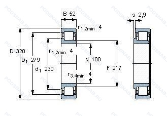 Аналог цилиндрического роликового подшипника NJ236-E-M1-C3 — это подшипник такого же размера dx180,Dx320,Bx52, типа и конструкции.