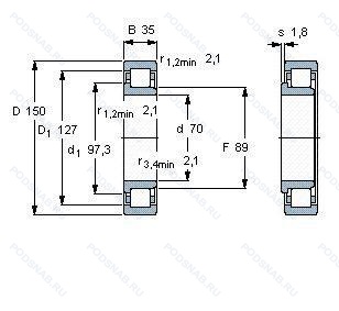 Модификации цилиндрического роликового подшипника NJ314ECJ/C3 — это измененное основное конструктивное исполнение NJ314, основные размеры (70x150x35) не отличаются.