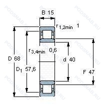 Аналог цилиндрического роликового подшипника NU1008-M1-C3 — это подшипник такого же размера dx40,Dx68,Bx15, типа и конструкции.