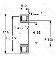 Модификации цилиндрического роликового подшипника NU1019-M1-C3 — это измененное основное конструктивное исполнение NU1019, основные размеры (95x145x24) не отличаются.