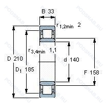 Модификации цилиндрического роликового подшипника NU1028-M1-C3 — это измененное основное конструктивное исполнение NU1028, основные размеры (140x210x33) не отличаются.