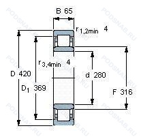Размер подшипника: 280x420x65 мм.