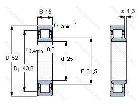 | NU205N | Канавка под стопорное кольцо на внешнем кольце. |