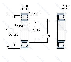 Аналог цилиндрического роликового подшипника NU2232ECMAC3 — это подшипник такого же размера dx160,Dx290,Bx80, типа и конструкции.