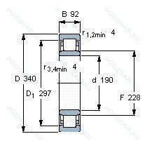 | NH2238 | Роликовый радиальный однорядный подшипник. Канавка под стопорное кольцо на наружном кольце подшипника. | 190.00 | 340.00 | 92.00 |