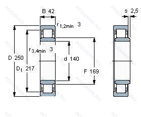 | NJ228N | ISO | Канавка под стопорное кольцо на внешнем кольце. |