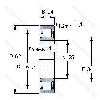 | 42605-Е | Роликовый радиальный однорядный подшипник. Сепаратор из текстолита.. | 25.00 | 62.00 | 24.00 |