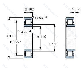 Модификации цилиндрического роликового подшипника NU2328E-M1-C3 — это измененное основное конструктивное исполнение NU2328, основные размеры (140x300x102) не отличаются.