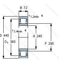 | NP 248 | Роликовый радиальный однорядный подшипник. Канавка под стопорное кольцо на наружном кольце подшипника. | 240.00 | 440.00 | 72.00 |
