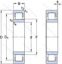 Однорядный цилиндрический роликоподшипник. Наружное кольцо подшипника имеет два борта, а внутреннее кольцо бортов не имеет, оптимизированная внутренняя конструкция предусматривает увеличенное количество роликов и/или ролики большего размера с улучшенными условиями контакта торцов роликов с бортами внутреннего кольца, сепаратор из стеклонаполненного полиамида pa66. центрируемый по роликам.