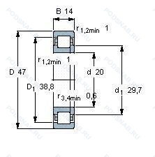 | 6-12204 К2 | Роликовый радиальный однорядный подшипник. Кольцевая проточка на середине цилиндрической наружной поверхности наружного кольца плюс три отверстия для смазки. | 20.00 | 47.00 | 14.00 |