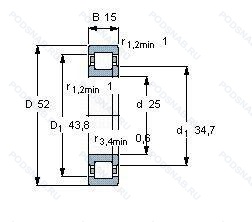 | NJ205E G15 J30 | ISO | Повышенная грузоподъемность. Внутренний зазор больше нормального. Литой сепаратор из полиамида 6.6. армированного стекловолокном. Элемент качения по центру. |