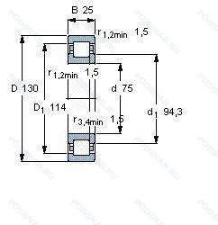 | NU215E.JP1.C3 | ISO | Внутренний зазор больше нормального. Повышенная грузоподъемность. Прессованный сепаратор из листового металла. |