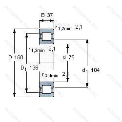 | NJ315E.JP1.C3 | ISO | Внутренний зазор больше нормального. Повышенная грузоподъемность. Прессованный сепаратор из листового металла. |