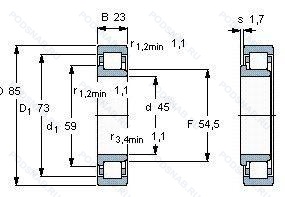 | NJ221W C3 | Внутренний зазор больше нормального. Подшипник без смазочных отверстий в наружном кольце. |