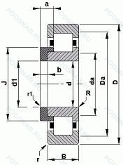 | N222 | Однорядный цилиндрический роликовый подшипник. Внутреннее кольцо подшипника имеет два борта. Два смещенных на 180° стопорных паза на наружной поверхности наружного кольца подшипника. Основное конструктивное исполнение. |