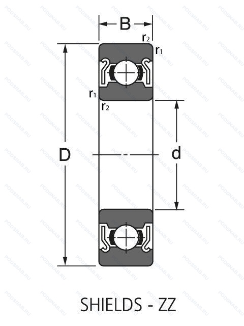 | Обозначение | Конструктивные особенности | Внутренний (d) | Наружный (D) | Ширина (B) |