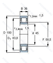 Аналог цилиндрического роликового подшипника NU2309-E-TVP3-C3 — это подшипник такого же размера dx45,Dx100,Bx36, типа и конструкции.
