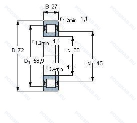 | NJ 2306 ECPH | Роликовый радиальный однорядный подшипник. Однорядный цилиндрический роликовый подшипник. | 30.00 | 72.00 | 27.00 |