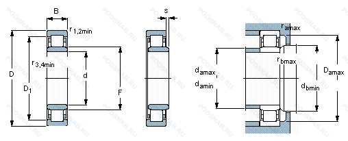 Однорядный цилиндрический роликоподшипник. Наружное кольцо подшипника имеет два борта, а внутреннее кольцо бортов не имеет, оптимизированная внутренняя конструкция предусматривает увеличенное количество роликов и/или ролики большего размера с улучшенными условиями контакта торцов роликов с бортами внутреннего кольца.
