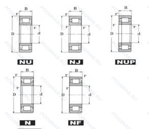 | Обозначение | Конструктивные особенности | Внутренний (d) | Наружный (D) | Ширина (B) |