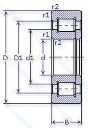 | NUP316U | Одно ребро. Одно стопорное кольцо в наружном кольце. |