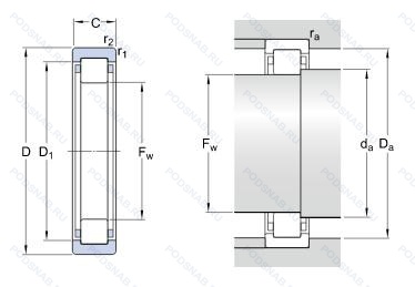 | RNU1017 | Однорядный цилиндрический роликовый подшипник. Основное конструктивное исполнение. |