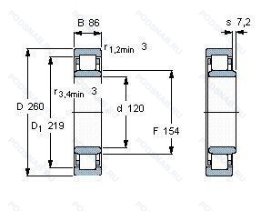 Размер подшипника: 120x260x86 мм.