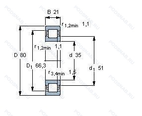 | NUP307E.TVP | Повышенная грузоподъемность. Molded Snap-Type Cage Of Glass Fibre Reinforced Polyamide. Rolling Element Riding. |