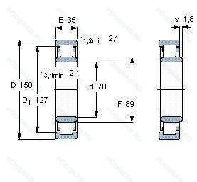 | NUP314U | ISO | Одно ребро. Одно стопорное кольцо в наружном кольце. |