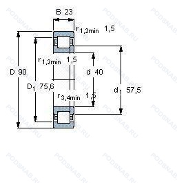 | NUP308VH-1NRS02 | Две стопорные канавки во внешнем кольце. Полный комплект цилиндрических роликоподшипников с набором самоудерживающихся роликов. Width Can Differ From The Item Without The '-1' Suffix. Кольца стабилизированы по размерам для использования при рабочих температурах до +250°C (482°F). |