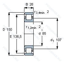 Модификации цилиндрического роликового подшипника N217-E-M1-C3 — это измененное основное конструктивное исполнение N217, основные размеры (85x150x28) не отличаются.