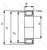 Однорядный бессепараторный цилиндрический роликоподшипник. Два борта на внутреннем кольце и один борт на наружном, полноразмерный цилиндрический роликоподшипник с модифицированной внутренней конструкцией.