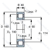 | NUP2218M | Подшипник с латунным сепаратором. центрированный по телам качения. |