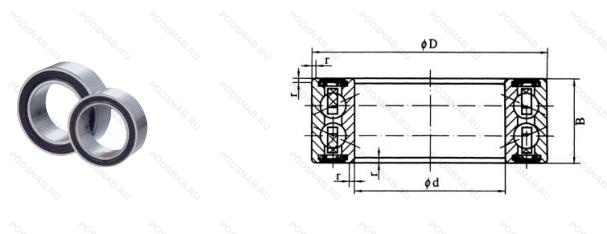 | Обозначение | Конструктивные особенности | Внутренний (d) | Наружный (D) | Ширина (B) |